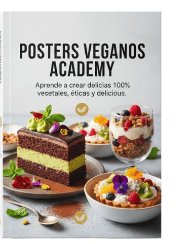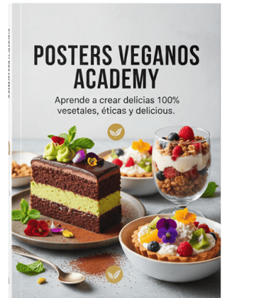 Aprenderas a crear dulces irresistibles sin ingredientes de origen animal, desde brownies hasta tartas y más. Un regalo perfecto para expandir tus opciones culinarias mientras sigues tu camino emprendedor con ‘Posters veganos academy