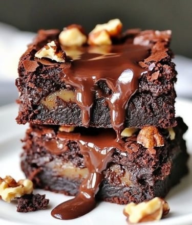 Brownies caramelo derretido y nueces.